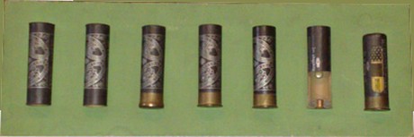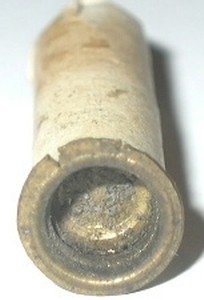 7mm Spazierstock, Schrotpatrone mit weißem Papiercontainer.  |