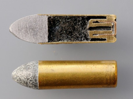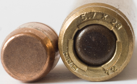 Hülsenlose Patrone im Kaliber 4,7x21 mm.    |