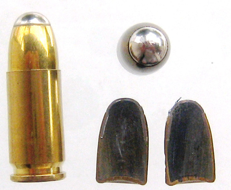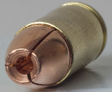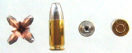 Eine Entwicklung für Behörden von MEN, Quick Defense 3,6 und 4,2 g. Das Geschoß besteht aus einer  Kupferlegierung mit Hohlspitze in der ein Aluminiumeinsatz sitzt.