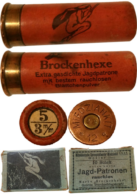 Marke Brockenhexe der Mitteldeutschen Sprengstoffwerke Miedziankit GmbH in Goslar, Kal. 12     |