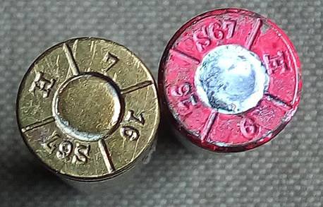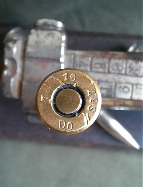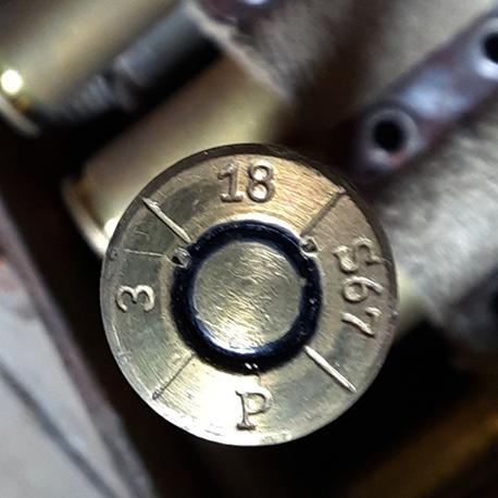 Hier handelt es sich um eine solche S Patrone mit dem sogen. "S Geschoss mit Rille", wie die Segmentierung des Hülsenbodens zeigt.
