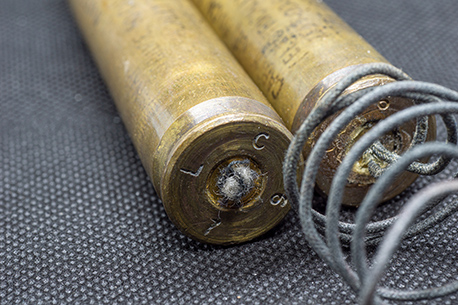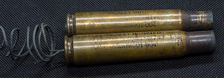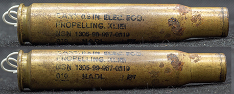 Es handelt sich hierbei um 2 verwendete M174 Kartuschen die in Hollister, California von der Firma Caelus, Inc. um 1990 hergestellt wurden. Es wurden diverse Hülsen hierfür verwendet.