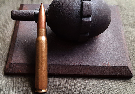 Die untere Abbilung zeigt eine inerte ( entladene) Wurfgranate.